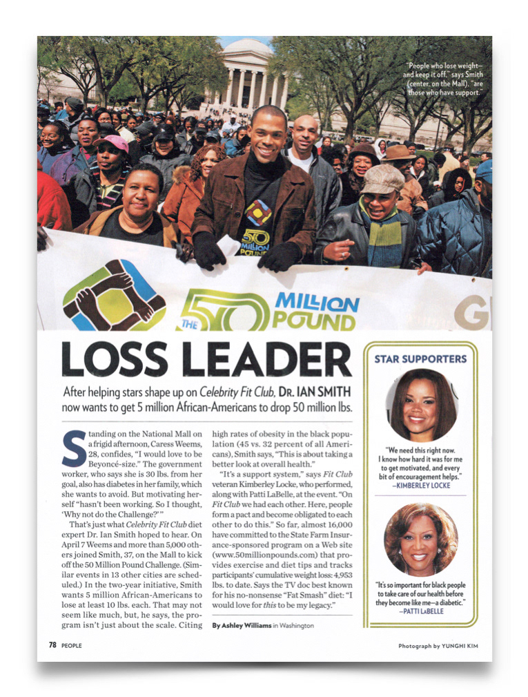Managing weight and staying healthy is one of the most difficult challenges to face. To help fight the obesity epidemic, we teamed up with Celebrity Fit Club's Dr. Ian Smith to create the 50 Million Pound Challenge. The extensive 360º marketing program included grassroots outreach, celebrity influencers, all branding design, integrated advertising campaigns and large scale community events.