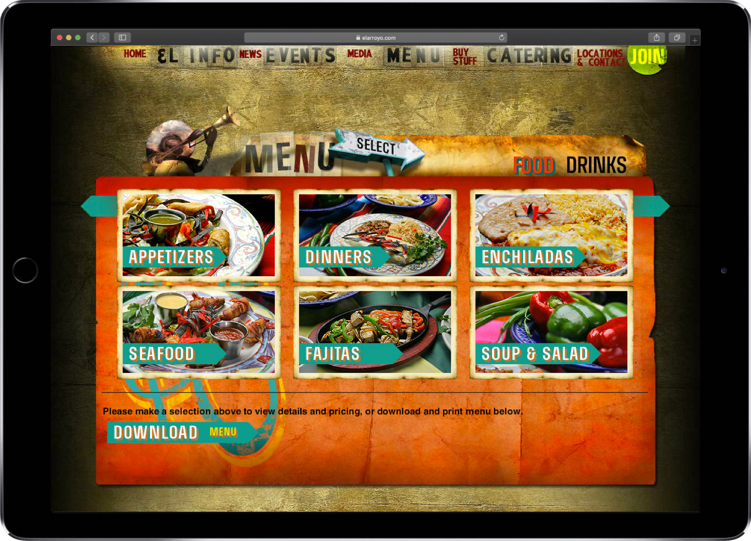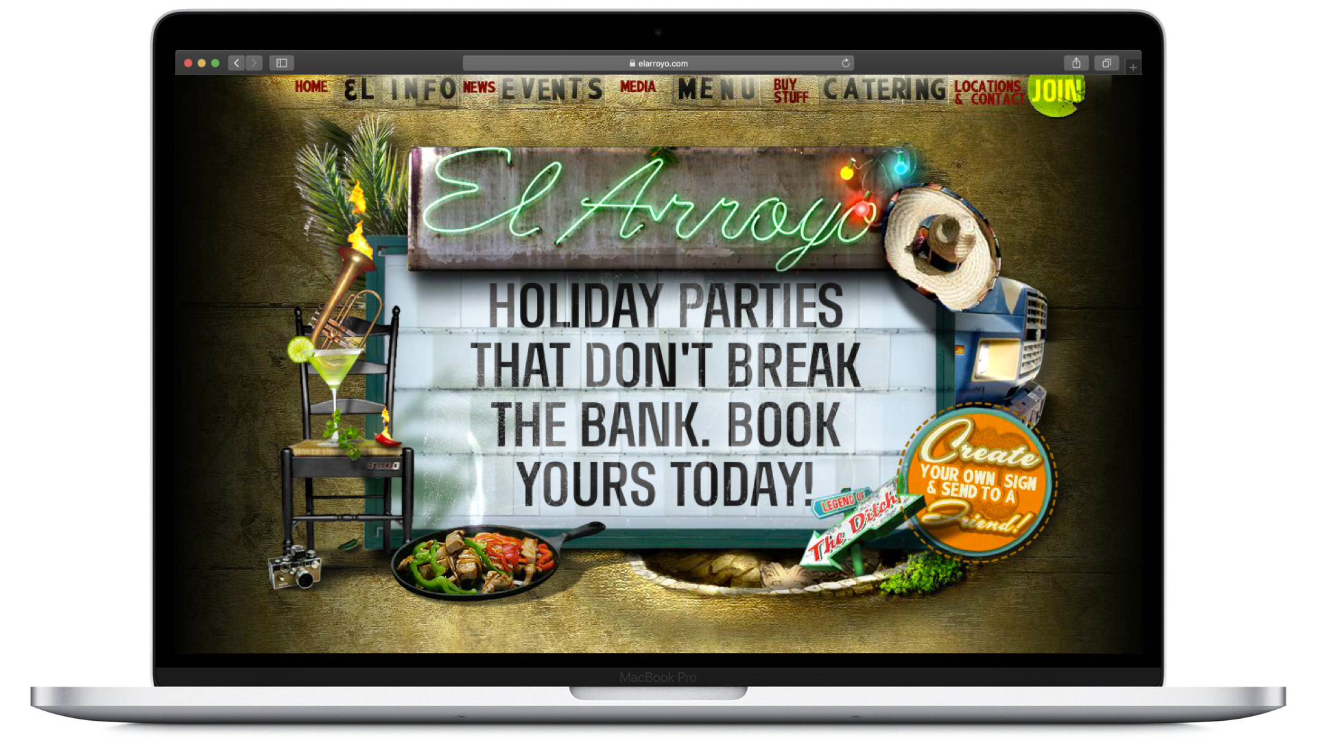 Por supuesto, an easy-to-navigate menu of legendary El Arroyo goodness, a portal for online orders and a sweet swag store.